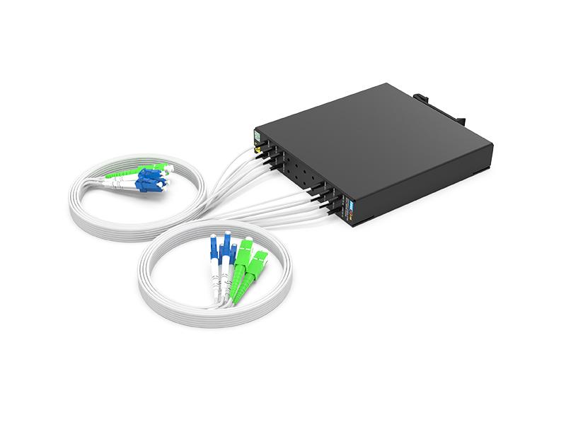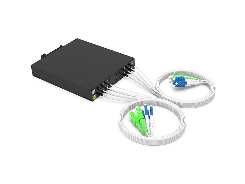 2CH CWDM OADM admite 8 canales de diferencia comercial hacia el oeste y 8 canales de diferencia comercial hacia el este (eliminar y agregar 8 canales al lado de diferencia).