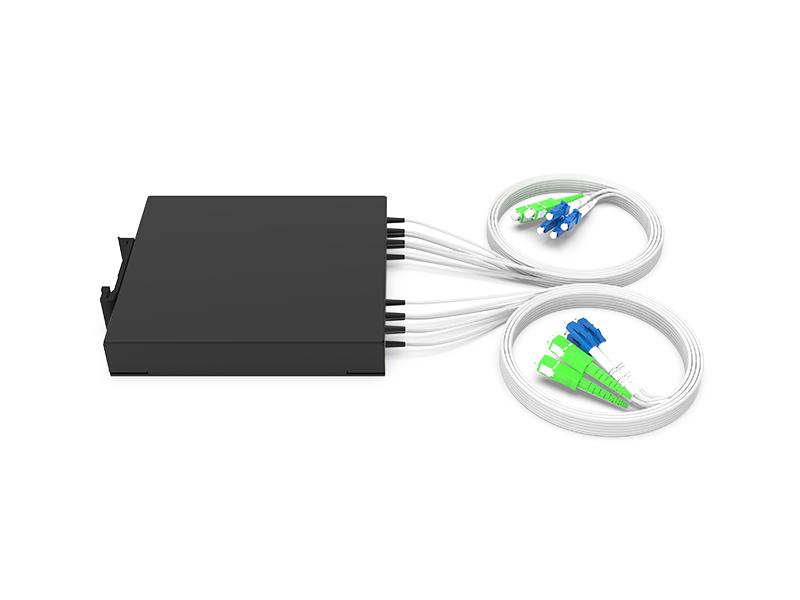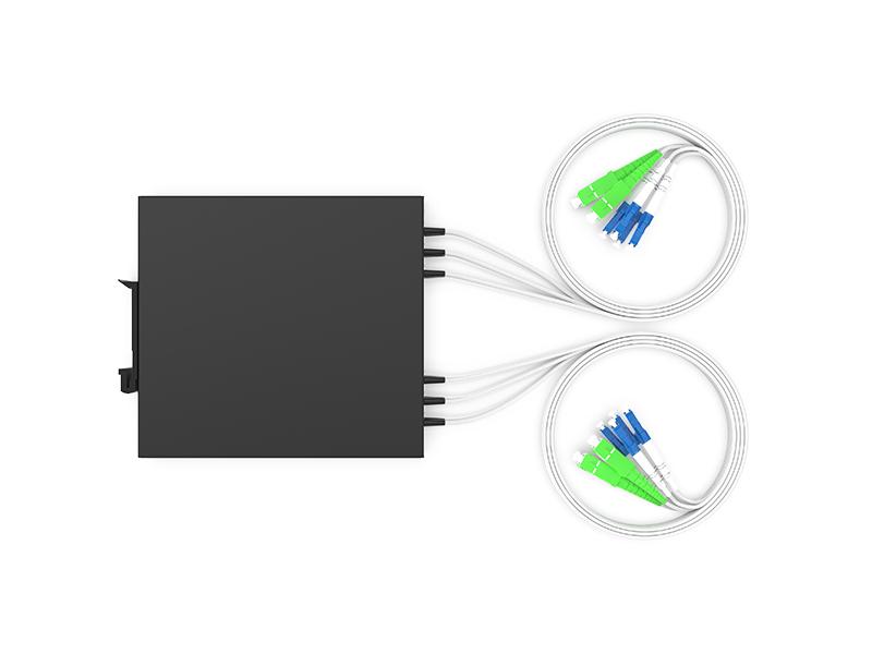 | COAMD2-DIN04-4749 | CWDM OADM 2 canales 1470 nm ~ 1490 nm, Oeste y Este, Fibra dual, Puerto de ondas LC/UPC, Puerto de línea SC/APC, Fibra de 0,9 mm 1,0 m, Caja de montaje DIN 120 x 110 x 20 mm |