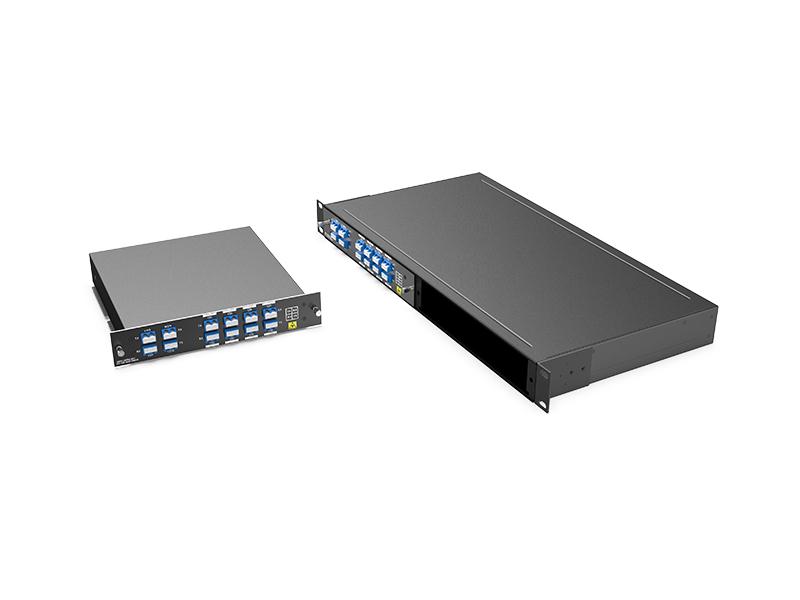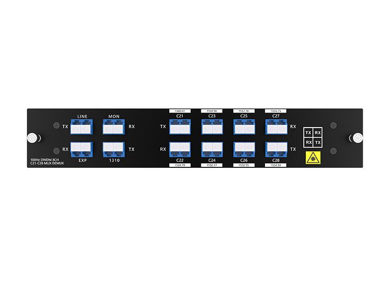 El DWDM de 8 canales es un módulo LGX totalmente pasivo que se instala en un rack de 1U de 2 ranuras; su pérdida de inserción es inferior a 2,4 dB. Junto con los amplificadores DWDM y el dispositivo DCM, el sistema de transmisión DWDM de 8 canales permite la transmisión a larga distancia.