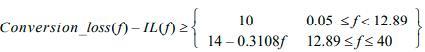 Para 0,05 ≤f ≤40 GHz, donde f es la frecuencia en GHz |