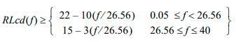RLcc (f) ≥1.8 Para 0,05 ≤f ≤40 GHz, donde f es la frecuencia en GHz |