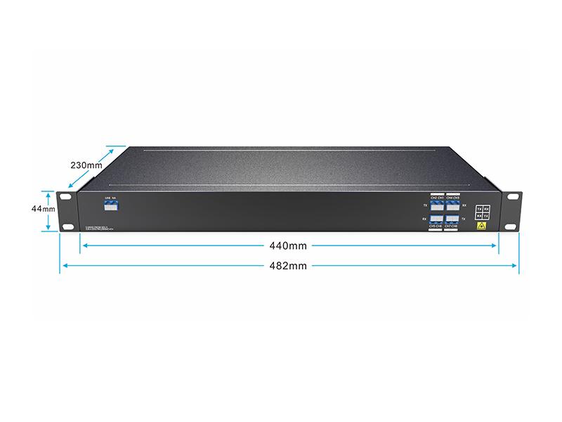 El multiplexor/demultiplexor DWDM de banda O de 4 canales (8 ondas) de fibra óptica, diseñado por FIBERWDM, es un dispositivo DWDM totalmente pasivo con baja pérdida de inserción (longitud de onda <3,0 dB). Las ondas son de 1304,58/1305,72/1306,85/1308,00/1309,14/1310,28/1311,43/1312,58 nm y admite transmisión de 4 canales en una sola fibra.