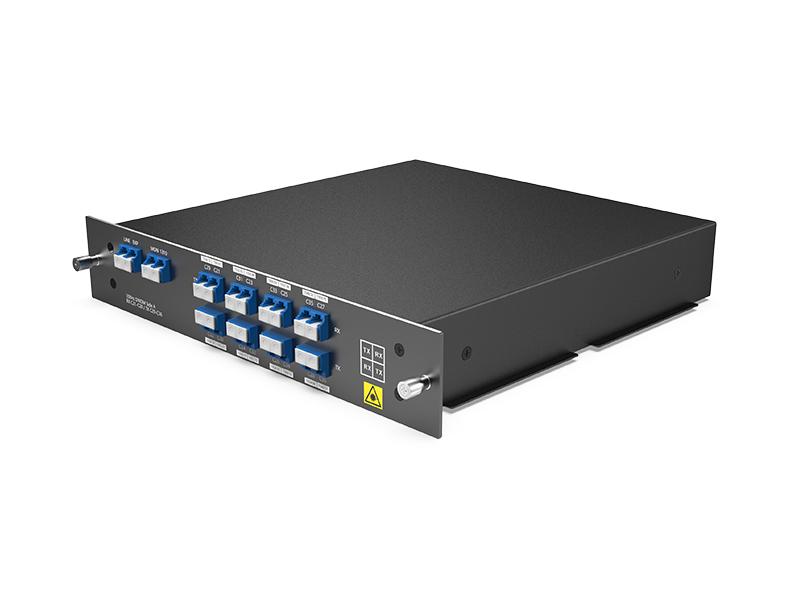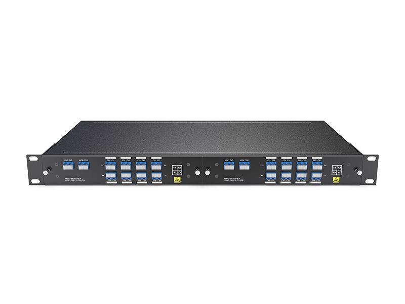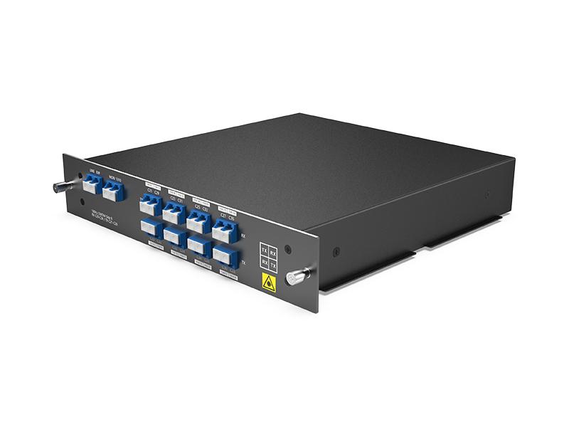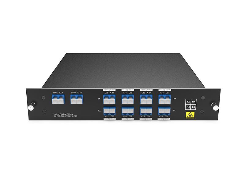 El multiplexor/demultiplexor DWDM de 8 canales (16 ondas), diseñado por FIBERWDM, se utiliza por pares. En el lado A, las ondas son: RX C21 a C28 (1560,61 nm ~ 1554,94 nm), TX C29 a C36 (1554,13 nm ~ 1548,51 nm); y en el lado B, las ondas son: RX C29 a C36 (1554,13 nm ~ 1548,51 nm), TX C21 a C28 (1560,61 nm ~ 1554,94 nm). Junto con los amplificadores DWDM y el dispositivo DCM, el sistema de transferencia DWDM de 8 canales permite la transmisión a larga distancia por una sola fibra.